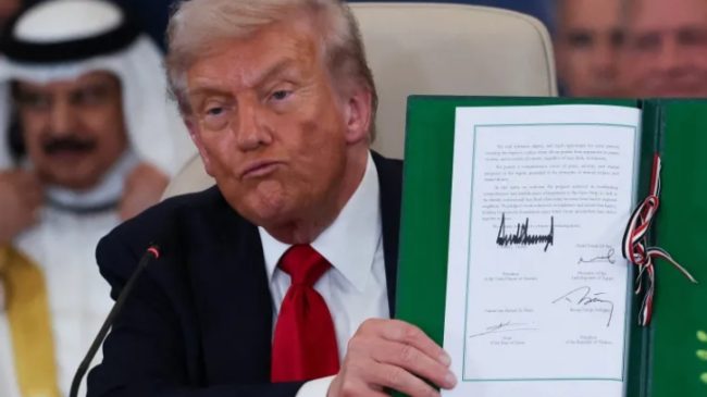 On Monday (October 13), U.S. President Donald Trump signed the agreement during an international peace summit held in Sharm El-Sheikh, Egypt. Alongside him, Egyptian President Abdel Fattah el-Sisi, Turkish President Recep Tayyip Erdoğan, and Qatar’s Emir Sheikh Tamim bin Hamad Al Thani, along with other world leaders, also signed the deal.